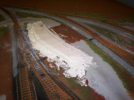 own to watch Joel Bragdon of Bragdon Enterprises (www.bragdonent.com) give a very energetic demonstration of a Geodesic foam kit from Bragdon Enterprises. Even before the demonstration we looked at the booth that was set up. Looking at the small 2’ X 2’ stand with a steep angled hill side with rock and soil, colored very well at one corner of the table, which was unbelievably realistic was something that pulled us to the demonstration but we also thought to our selves that is not something we are ready for. Our minds were changed as soon as the demonstration began. We sat down and inside a ½ hour we learned more than we did the entire year before that day! The demo started with a brief explanation “use what ever structure you want” it doesn’t matter too much what this product goes over! Then with that said Joel went to work on the demonstration of the foam and resin casting. I was hooked from the start, fast easy and realistic. One draw back, initial cost was high but the molds are sturdy and can be adjusted to fit any area. Even with that cost, the time and effort saved and the look of the finished product did cover the initial costs quite quickly.