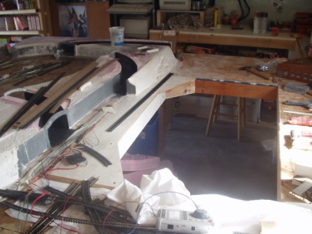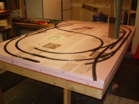 The switch to or addition of an N-Scale train layout was a plan that took many years. I held off the plan because I was learning so much with HO that I thought I wasn’t ready. Jay and I went to several show and visited local enthusiasts that in total convinced me to get to work. I tried to remember to take pictures at every turn for my benefit mainly. Now I felt pretty smart with the things I learned with the HO build, however I have been humbled at almost every step of the N scale! I started with a different frame work for the table and chose “floor underlayment” for the surface. Great smooth surface to work on but really brittle and support was a must. Then I chose a foam road bed over cork just to try something new, again I was schooled! I learned the use of different glues some expensive and some cheap. In my opinion I didn’t see much difference in white glues for the foam road bed. I used a craft tack glue from Wal-Mart (about $4), “Mod Podge” sealer glue from Michaels’ (about $6) and “Foam Tack Glue” from Woodland Scenic ($10), All seamed to work about the same but I chose to finish with the Woodland Scenic glue because it was the most expensive and I wanted to get my money’s worth out of it. For the wood I prefer “Elmer’s” yellow wood glue. I have used this for years and I am really happy with the outcome. I did a bit of research on securing the track to the road bed and ended up with nails… wait before you scream at me I didn’t use them, I was told to look a bit harder and research gluing the track down. I was hesitant because I didn’t think it would work, no mechanical fasteners would leave it to fail! After hours of reading I was sold. I tried three different types of glue I read about and the results were much different than gluing the roadbed! The “Foam Tack Glue” from Woodland Scenic I used for the roadbed was also recommended for the track. I tried it on a few pieces and liked the outcome but the application was slow and not real user friendly when you are picky about the waste. The craft glue mentioned earlier was tried and didn’t hold up to my pry test so I moved to Red Devil 100% Silicone (clear) with the tip cut close to the end for a small 1/8” hole at an angle. Got to say I was skeptical again but it really worked great. The silicone was sturdy to my pry test, flexible to hand pressure and cures almost invisible to the eye. Little glossy but ballast will cover it. If you plan accordingly you can even add ballast at the same time. I didn’t plan that far ahead. And this is were I am at!