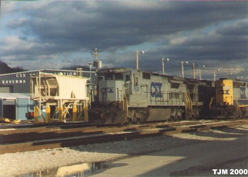 CSX C40-8 on a cold February in 1993 rests at the Ravenna, KY Locomotive