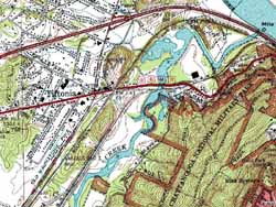 Topographic map and aerial photograph courtesy Microsoft Terraserver and the