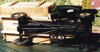 and rear axles are located and stabilized with lengths of rod bent to the