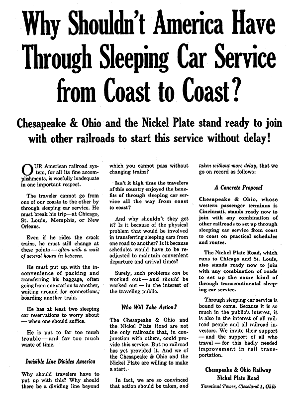 Chesapeake & Ohio and the Nickel Plate are willing to make a start.