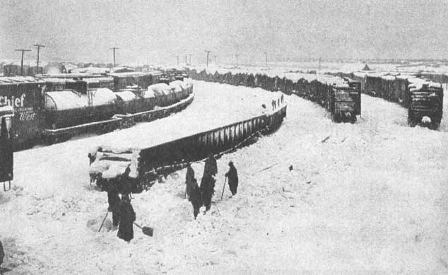 the north and east, tired, cursing railroadmen struggled to throw switches