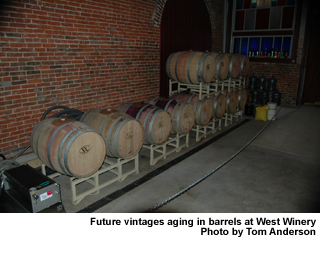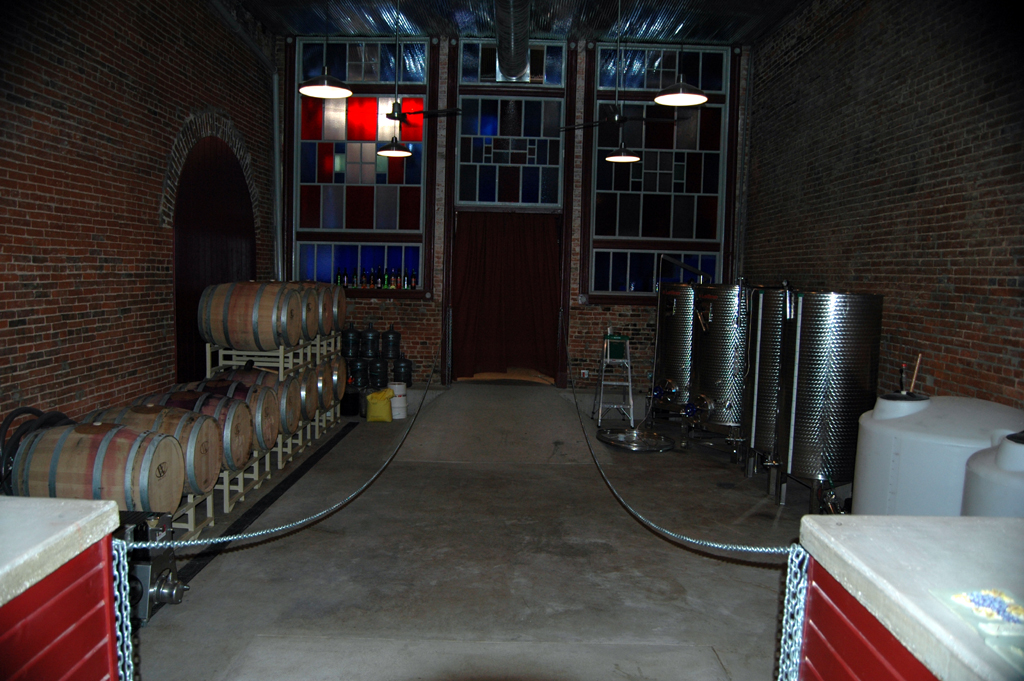 The next day we headed down to Macon to visit the West Winery owned by Chris and Jennifer West. This is a new facility they've moved into in downtown Macon. The winery has a very hip vibe and quite a large tasting area. The wine is made in the back of the building and some of the production is viewable from the tasting room. They have two labels they produce here, West Winery and Loco Vino. The West Winery label has a fantastic 2006 Norton. For those who like sweet wines the Duck Creek series of wines are a good value, my favorite being the Duck Creek White. Duck Creek Rose and Duck Creek Red are also available. Apple wine is available in dry, sweet and spiced versions as well as apricot wine. The spiced apple wine would be fantastic in winter time. The Loco Vino label is inspired by the local railroad history in the area. Smokestack White is a dry white wine that would go well with fish and chicken. Little Red Caboose is a delightful semi-dry red that I'm sure would be a hit with those who don't typically like red wine. Roundhouse Red is an easy drinking dry red that would work with burgers, BBQ and steak. I also had the opportunity to barrel sample there 2009 Chambourcin that will be bottled in April and was blown away. It was the best example I've had of this variety. The winery puts on different events pairing food with wine and is hopefully the start of a very cool downtown Macon district.