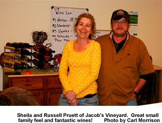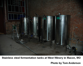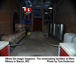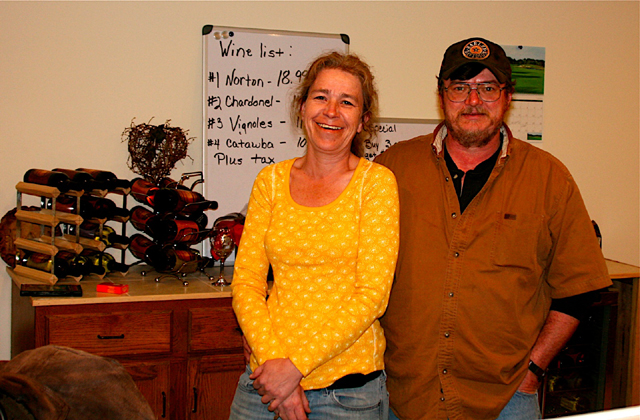 fall of 2009. Most of the wines here are of the sweeter variety however I would classify the Norton as being dry. One interesting wine of note is the Vignoles which the winemaker called a bit of a mistake. Apparently there was some of the yeast left over and the bottle started to re-ferment. It has a touch of sweetness but you get the bubbles like a sparkling wine but in a lighter form. Overall the wines were very good. Being it is a small family run operation we dealt with the owners and they were most gracious. In fact, when I mentioned I was making my own wine and was planning on using blue bottles for it, two days later they dropped off two cases of blue Bordeaux bottles for me. I was stunned! I will have to say I've met some of the friendliest folk in Missouri.