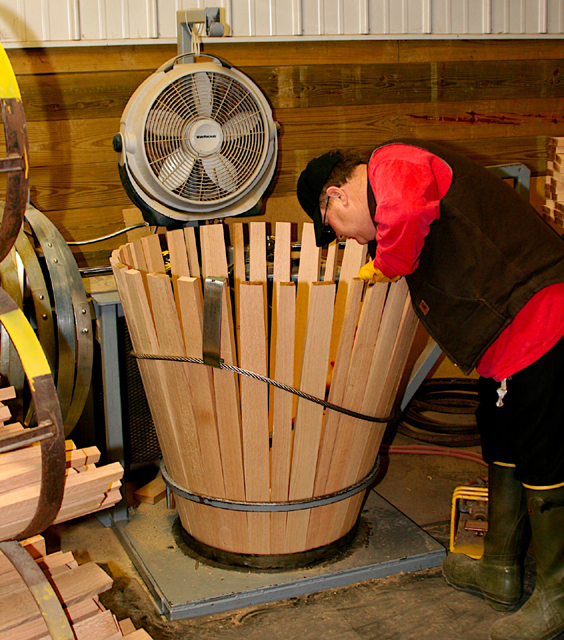 The A&K Cooperage is in the next building. If you're lucky you can get a tour of the barrel making process. The cooperage is partly owned by Silver Oak Cellars in the Napa Valley. The wood used is primarily Missouri white oak which is air cured for two years before being incorporated into barrels. French oak barrel staves are occasionally imported for those who want French barrels. Most of the barrels make there way to California via the train. On our trip we got to see how the barrels were shaped and tested to make sure they don't leak. We then got a quick tour of some of the antique cooper tools and barrel memorabilia they have on hand by the owner's father.