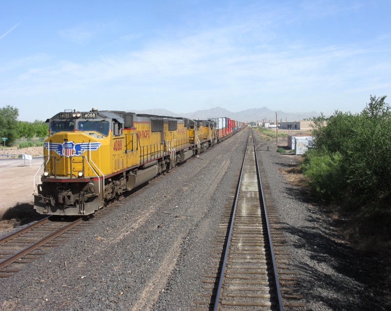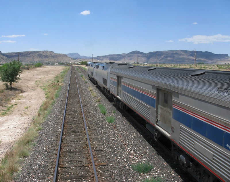 The next morning I awoke with a horrendous backache. I guess it wasn’t such a good idea to sleep on that bottom bunk after all. After a quick check of the time I noticed we were running about an hour late. In a short time we would be arriving into El Paso Tx. I quickly went downstairs to shower and then decided to head off to breakfast. At breakfast I of course ordered my usual French toast & Diet Pepsi. After breakfast I started the trek back thru the coaches and back to my sleeper. Our arrival into El Paso was imminent and I wanted to get my camera ready. Here we would have the opportunity to jump off and take in some fresh air. I also wanted to take the time to journey up front so I could take pictures of our train’s consist. Since we were running late, our stop was cut to about 20 mins. After departing El Paso we quickly made our way thru town and in no time were up to track speed. Unfortunately this was not to last as some idiot decided it be a good idea to play on the tracks directly in our train’s path. This would cause us to go into emergency braking. After coming to an emergency stop our conductor jumped off to talk to the guy but the moron ended up running away. After a quick air brake test we were quickly on our way again.