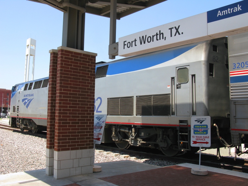 After lunch an announcement was made that we would soon be arriving at our station stop of Ft Worth Tx. Here of course we would be allowed to detrain and get some much needed air. As we entered the downtown Ft Worth area I noticed a mish-mash of tracks going every which way. I also noticed a number of UP & BNSF trains as they slowing made their way in and out of town. This of course brought down our speed considerably. In a little while our train would begin snaking its way into the Ft Worth Amtrak Depot. First thing I noticed off the train was the humidity. Man, was it sticky out there! Also on an adjacent track I noticed train #822 the northbound Heartland Flyer. This is the daily train to Oklahoma City and it is not scheduled to depart until 5:25PM. It seems like a number of people coming off our train were actually connecting to the Heartland Flyer. After a few photos in and around the Ft Worth Depot, I jumped back into my sleeper and awaited our departure.