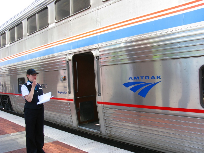 Back in my room it was getting late but I wanted to stay awake until Texarkana Tx/Ar. There would be one last smoke break here and I wanted to jump off to see how the night time weather was. Well outside it was rather nice although a bit humid. After our short stop in Texarkana, we were on our way again. Melissa would soon come by to ask if I wanted my bed made up. I quickly explained to her that my last sleeping car attendant had a real tough time trying to make up my bed. She said she would give it a shot and that if my seats did not want to cooperate, she would be more than happy to move me to an empty roomette. Excellent I thought! As I stood out in the hallway I could totally hear Melissa huffing & puffing with my stubborn seats. At this moment our conductor was coming by and as he walked by the roomette he asked Melissa if she needed any assistance. She explained to him that one side of the seat did not want to go down all the way and that with his permission she would move me to another roomette. He then said “…let me get in there, let me see what I can do…!” .. Well in a matter of 15 seconds this big burly conductor had my seat down all the way. By using his weight he was able to kick in the seat and thus make it go down all the way for the first time on this trip. Amazing!! I then laughed, looked at him and said...” Man, I could have sure used you back in Yuma!!!!...”