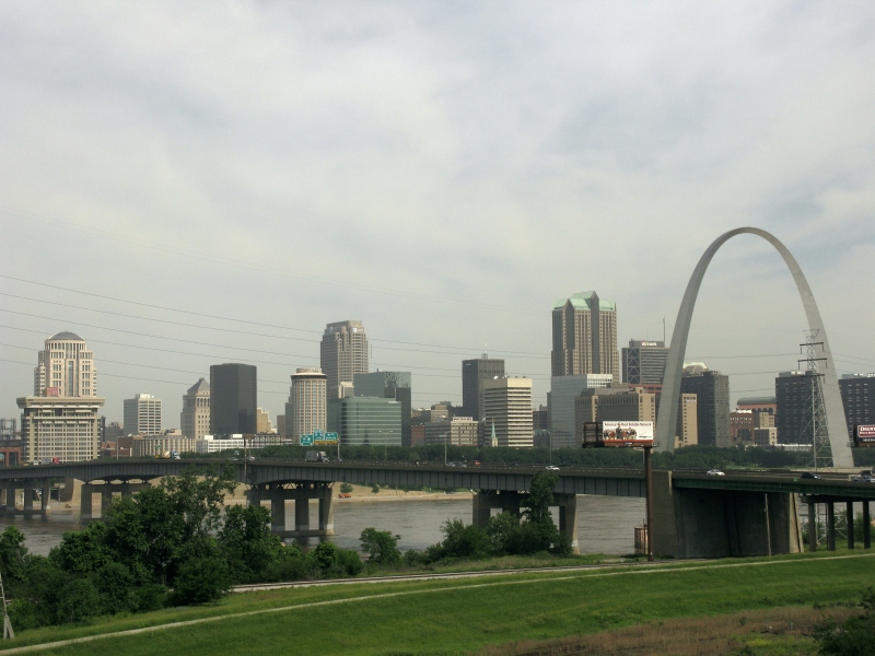 The next morning was Monday Jun 1st. This would be my last day on the train. It had been an adventure so far and I was anxious to see how the rest of the trip would turn out! After showering I of course headed off to breakfast. There was really no one in the Cross Country Café car and thus I was able to be seated rather quickly. I would later be joined by a nice older gentleman also going to Chicago. He asked how long I had been on the train and he could not believe it when I told him I had gotten on Fri May 30th in Yuma Az! We both ordered the French toast and while waiting for our food to arrive, I noticed us arriving into St Louis Mo! The conductor made an announcement that it would still be about 15-20 mins until our train reached the station. Perfect I thought, since I did not want to have to rush thru my breakfast! After breakfast I went back to my roomette to grab my camera and to get ready for our arrival into St. Louis. Once in St Louis I noticed a ton of people getting off and on. There also seemed to be quite a bit of construction going on. I later learned that a new transportation center is being built and that Amtrak would soon stop at this new location a bit up track. Since we were still running about 2 hours late, our stop was once again cut short. With our locomotive refueled and our station work complete, the All Aboard! call was made. As our train made its way out of town we would soon cross the mighty Mississippi River! After crossing the river the one famous St Louis landmark that everybody knows finally came into clear view. The St Louis Gateway Arch is known as the "Gateway to the West" It quickly appeared on the left side of our train and since my roomette was on the right I had to snap my pictures of it from the left side. Luckily I found an empty roomette to accomplish this! The arch really is an amazing sight and I must say that finally seeing it with my own eyes was one of the highlights of this trip!