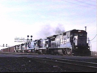 A Conrail freight passes by the Hammond, Indiana Amtrak station, our featured Hot Spot. |