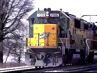Other carriers use the Conrail line as well. Here a Union Pacific train, led by ex-CNW SD50 #7016 hustles east. |