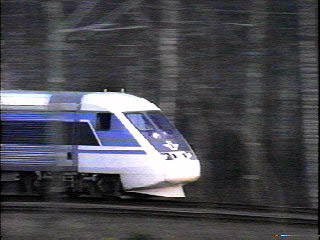 All pictures displayed are video captures from actual program footage unless noted. Program 105 Porter, Indiana Hot Spot Travel by train in European countries is a more common way to get around than in the United States. In London, England, there are several very busy passenger train terminals that serve both the commuter and the long distance traveler. This program stops at three of them: Liverpool, Victoria, and Waterloo. Waterloo Station even serves as the terminus for Eurostar, which operates its trains under the English Channel tunnel. Videotaped in February, 1996. The country of Sweden created high speed passenger trains without having to extensively rebuild their existing railway system. This was accomplished by developing the X-2000, a high speed, electric powered passenger train. This program also includes an X-2000 promotional video provide courtesy of SJ, Swedish State Railways. Conventional passenger trains still exists too and we visit with Sophia Molburg about her travels by train in Sweden. The Hot Spot segment for this program is a junction point in Porter, Indiana. Heavy rail traffic over Conrail out of Chicago provide a lot of the activity. This is also where Amtrak's high speed line into Michigan converges. A CSX line also joins Conrail here. Videotaped in February, 1996. |