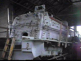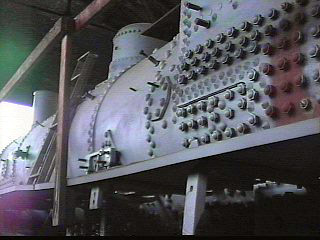 An ongoing project since 1986, Great Northern 4-6-2 #1355 undergoing restoration in an ex-Illinois Central enginehouse in Sioux City, Iowa. The 1355 displays the rear end of its Belpaire firebox. |