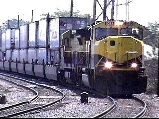 Yet another westbound approaches Clearing. Speeds are low here, but there is lots of variety. |