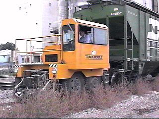 A Trackmobile is used to shuttle cars between the elevator and nearby sidings in blocks of eight. |