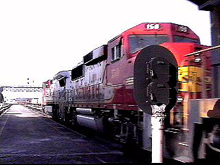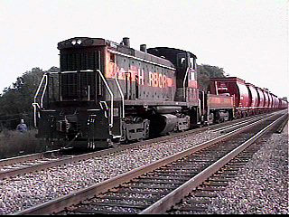 All pictures displayed are video captures from actual program footage unless noted. Program 109 A compilation of Trackside's first four Hot Spot segments: Hammond, Indiana; Elmhurst, Illinois; Blue Island, Illinois; and Joliet, Illinois. Hard again the southern shores of Lake Michigan, the Amtrak station at Hammond, Indiana sees a lot of rail traffic pass by throughout the course of a day. This feature, originally videotaped in 1995, first aired with our program "Moving The 2903" Today, the Chicago & Northwestern Railroad is slowing disappearing under a coat of Armour Yellow paint as it is slowly absorbed by the Union Pacific Railroad. In 1995, on the last weekend of C&NW's existence, we visited Elmhurst, Illinois, a focal point for the railroad's operations in and out of Chicago. This segment was first aired in conjunction with our story about Galesburg, Illinois's Railroad Days celebration. One of the busiest junctions in the Chicago area is located in the southern suburb of Blue Island, Illinois. This is a crossroads for several Chicago railroads and all of them move a lot of trains through Blue Island. This segment aired in with the feature story, "Alcos on the Belt Railway".Well known to many both inside and outside of Chicagoland, Joliet Union Station at the south end of downtown Joliet has been a popular gathering spot for trainwatchers for many years. Although there aren't as many rail lines through the junction as there used to be, you usually don't have to wait to long for something to happen. The Joliet Hot Spot first aired with our story about the Fox River Trolley Museum. |
