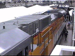 All pictures displayed are video captures from actual program footage unless noted. Program 110 The Railway Supply Association conduct an exposition for the railroad industry every year. However, it only conducts its outdoor expo every four years. For 1996, the outdoor expo attracted manufactures like General Motors, General Electric, MK Rail, and Johnstown America. Rolling stock and prototype equipment from Conrail, Union Pacific, Amtrak, and Burlington Northern Santa Fe were on display at BNSF's 14th St. Metra maintenance facility. The exhibits and displays are closed to the public. However Trackside cameras were allowed inside. Host Dave Reed visits with factory representatives as they tell about the latest innovations in the railroad industry. Videotaped in September 1996. In LaGrange, Illinois, north of the huge Electro Motive locomotive plant, Burlington Northern Santa Fe's triple track raceway between Chicago and Aurora, Illinois crosses Indiana Harbor Belt's line from Argo, Illinois to points north. This is one of the busiest Hot Spot segments we have visited to date and in several instances, several train movements are occurring at once. Also included is a classic "Train running over the camera" shot taken from between the rails. Videotaped in October 1996. |