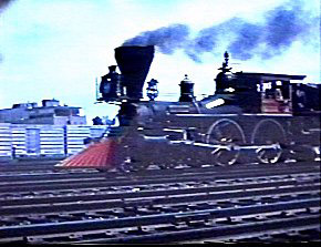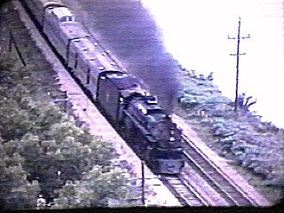 All pictures displayed are video captures from actual program footage unless noted. Program 113 A fascinating look at railroading at the end of the 1950's and early 1960's as seen through the 16mm camera of Peter Urban. We visit with Pete, look at some of his early movies, and hear the stories behind them. Some examples include early steam fan trips on the C,B,&Q, Big Boys on the Union Pacific, and the locomotive shops on the Nickel Plate Railroad. Not only are these locomotives and trains filmed on the outside, but from the cab as well. Also included are views of the American Freedom Train, and live steam locomotives in Canada and Mexico. Pete is an access producer for Northbrook Community Television in Northbrook, Illinois. In addition to his early filmworks, he has produced and assisted in a number of programs for NCTV. The images shown here were taken from Pete's 16mm film that Pete transferred to video. Interview recorded in September 1997. |