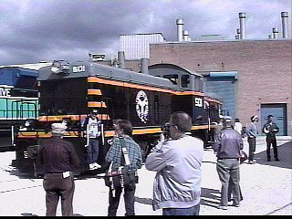 On display were Long Island Railroad DE30 #401, EMD SD90MAC demonstrator #8204, and CSX SD70MAC #701. Other historical locomotives present included Atlantic Coast Line E3 #501, Bangor & Aroostook BL2 #52, Chicago & North Western GP7 #1518, Belt Railway of Chicago TR-2 cow - calf #501 - 510, and Burlington E5 #9911A, and its "Nebraska Zephyr" trainset. |