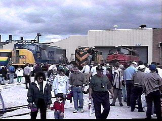 All pictures displayed are video captures from actual program footage unless noted. Program 117 From a quiet founding as Electro Motive Engineering in Cleveland, Ohio in 1922, the Electro Motive Division of General Motors quickly grew to become "The home of the diesel locomotive". After being purchased by General Motors, Electro Motive constructed and opened a new 200,000 square foot plant in the township of McCook, Illinois, in 1936. The following year EMD introduced the E unit passenger locomotive for fast passenger trains service. The groundbreaking FT freight locomotive followed in 1939. These two locomotives proved once and for all the viability of the diesel-electric locomotive in the railroad world and spelled the end of the steam locomotive. To mark the 75th Anniversary of its founding, Electro Motive hosted a one day Open House at its LaGrange locomotive building facility, an event that drew an estimated 30,000 people. An array of historic diesels were on display, intermingled with the latest high tech EMD offerings. Videotaped in September of 1997 For our Hot Spot segment we headed for the south Chicago suburb of Homewood, Illinois. Homewood offers a mix of freight trains, electric powered commuter trains, and Amtrak passenger trains. Homewood is located 23 miles from of Chicago and is situated alongside the Illinois Central Railroad's main artery to New Orleans and other points south. Videotaped in November of 1997 |