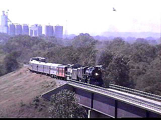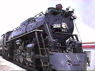 All pictures displayed are video captures from actual program footage unless noted. Program 121 The summer of 1998 was a rather lean year for mainline steam excursions across the U.S. One exception however, were a series of excursions led by Milwaukee Road S-3, 4-8-4 #261, including a months worth of trips around the upper Midwest as part of Burlington Northern Santa Fe's Employee Appreciation Special. For this show, we rolled more tape using more videographers, covered more territory, and interviewed more people than we ever have for any of our previous programs. We took a couple of train rides and had a great time in the process. Our story begins with the 261's arrival in Chicago for a pair of excursions from the Windy City to Galesburg for Railroad Days. The big 4-8-4 returns to Chicagoland later in the summer for BNSF's Employee Special operating over former Burlington Northern and Santa Fe mainlines. Finally, we catch up with the 261 again as it passes through Sioux City, IA on the way to Sioux Falls, SD. Videotaped June through September 1998. Then we check out Deval Junction, located just west of downtown Des Plaines, Illinois. This uniquely shaped junction features trains from the Union Pacific, Wisconsin Central, Metra, Canadian Pacific and Canadian National. Videotaped in November 1998. |