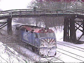 All pictures displayed are video captures from actual program footage unless noted. Program 126 The first weekend of the New Year brought on a massive snowstorm that dumped 14 to 21 inches of snow around Chicagoland. For the next week and a half, several subsequent storms added an additional foot giving the railroads in the area even more problems keeping the tracks clear. Normally punctual Metra trains were running late, very late, or even being canceled completely. To the general public, Metra's woes were the most apparent, but all types of rail traffic suffered. For this program, we braved bad weather and even worse automobile traffic to venture to see for ourselves to see just how bad things really were. The second half of this program features our visit to Artrain. This traveling exhibit features works of art commissioned by the Smithsonian Institute in Washington DC. We caught the train in the southwestern suburb of Palos Hills, which was the train's last stop before a whole new consist with a completely new exhibit. |
