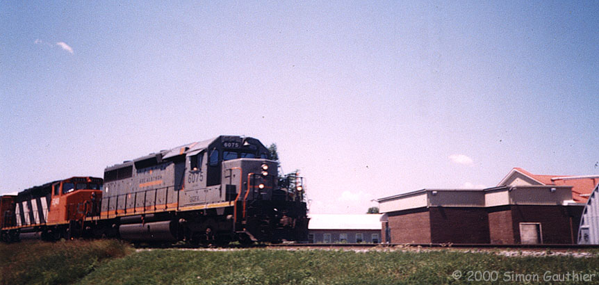 ALSTHOM SD40-3 # 6075 with SD40-2W # 5348 in Ste. Madelaine, Qc.