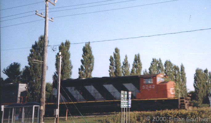 SD40-2W # 5242 and Alsthom SD40-3 # 6071 in Ste. Madelaine, Qc. Roaring