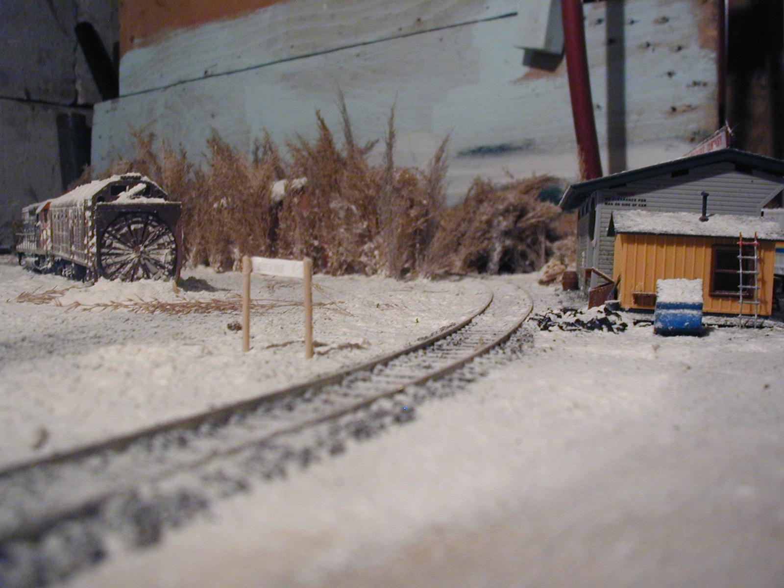 view of my layout with the rotary snowplow and GP35 parked in the yard.