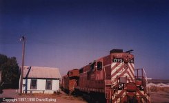 CCT 1795 has just arrived with caboose 24 on a September afternoon in 1998. The crew is tieing up and getting ready to head for home as the water cools in 1795's radiators. Tom Carter photo