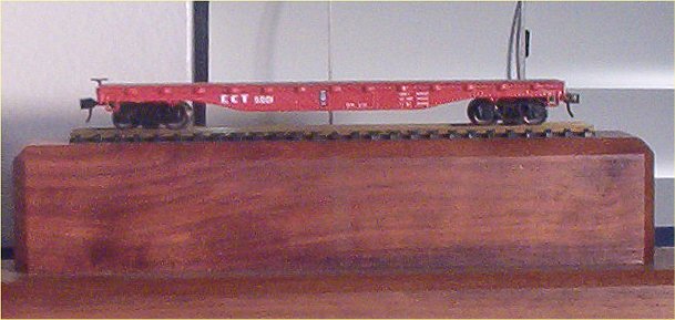 The CCT book provided evidence that CCT Flatcars 5001 and 5002 were red. The 5001 is a 50' Tyco flat, With Body Mounted Kadee #5's, Stock Tyco sideframes with 33" Intermountain wheels, Deck is painted and weathered with 2 shades of brown. Unfortunately, the Flat car was decaled and finished before I realized it had the letters "MW" between the reporting marks and the number, I'll be fixing that later. 5002 enters the paint shop 11/25/03