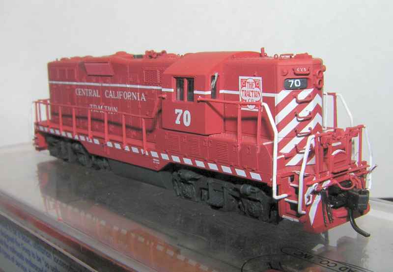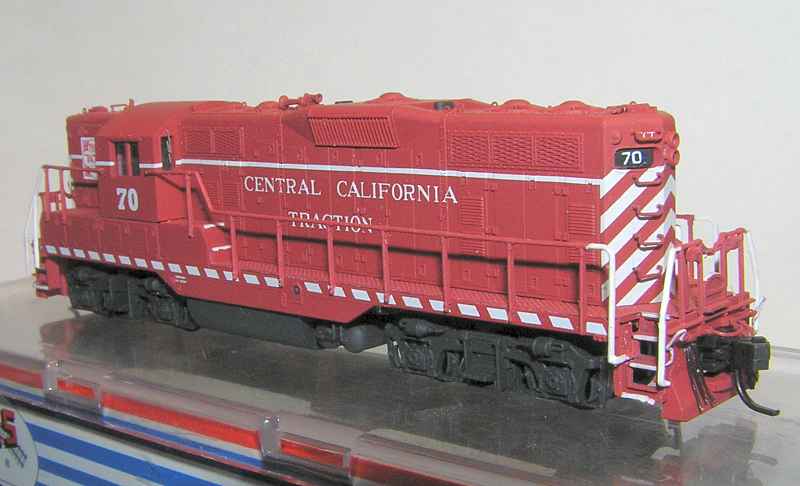 Another of Paul DeRouen's masterpieces built for and proudly owned by Co-Webmaster Tom Carter, this model of CCT 70 started life as a Life-Like Proto 2000 GP7 and was reworked with scratchbuilt drip gutters on the cab roof, MU hoses, sand and brake lines, and other assorted detail parts to represent CCT 70 as she appeared during its debut on the CCT on February 10, 1976. Paul also added a working strobe light, micro bulb headlights and a Digitrax DCC decoder set up to recognize the long hood as being the forward, or "A" end, just like on the prototype. Many hours were spent reliving childhood memories on the Sacramento Modular Railroaders HO layout with the new model in November of 2001, where these photographs were taken upon delivery of this beautiful model. Thanks again Paul!
