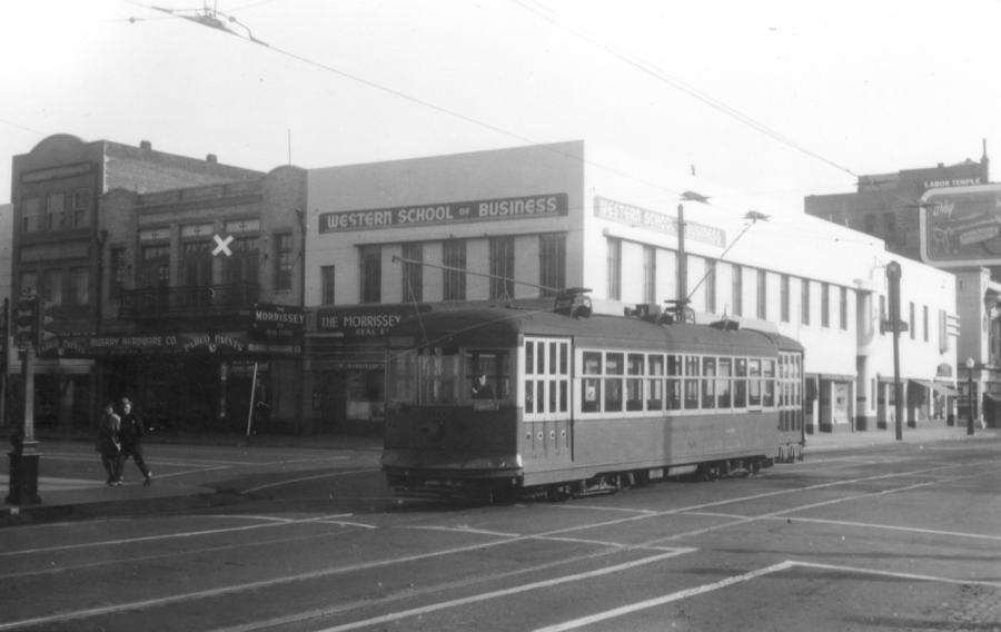 CCT 89, St. Louis 1925 42' steel, arch roof, 4 motor, one man car seen here westbound in Stockton CA on Weber Street. Webmaster collection. Back to: CCT Roster