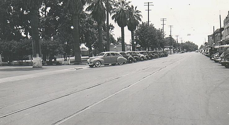 7/4/1939, tracks and wire on Sacramento St at Pine St in Lodi, CA Marvin Maynard Photo
