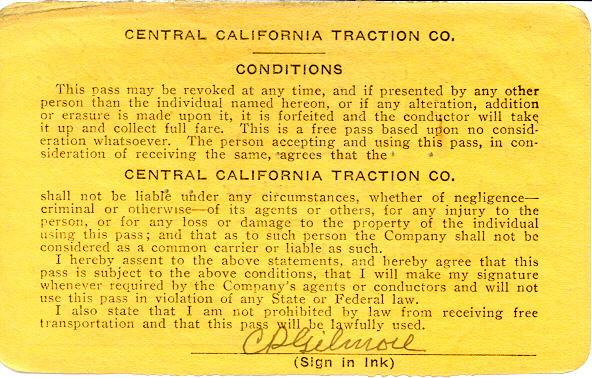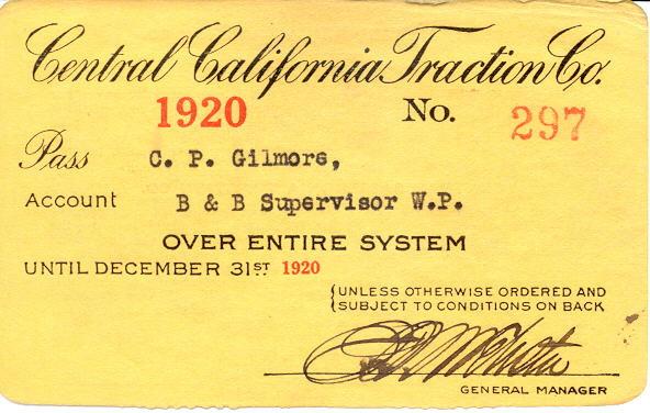 1920 CCT System Pass #297, signed by C.P. Gilmore. (Webmasters Collection).