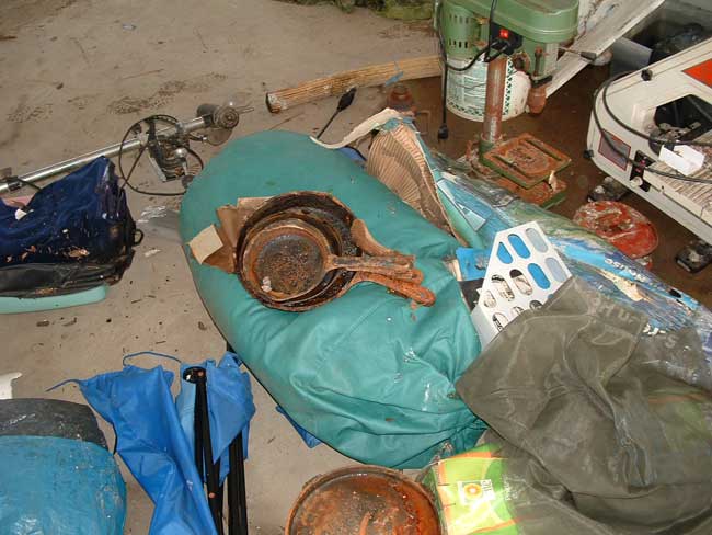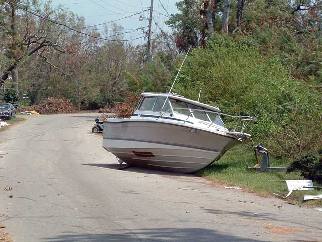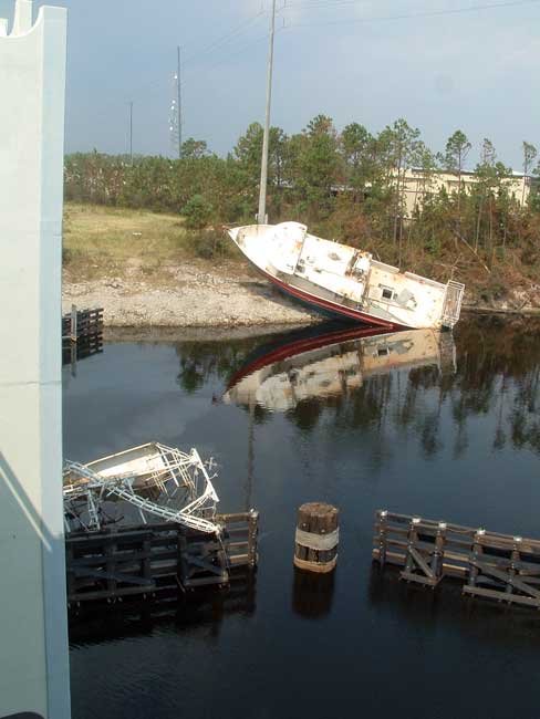 One of the boats at was washed up on the enbankment near the Cowan-Lorraine