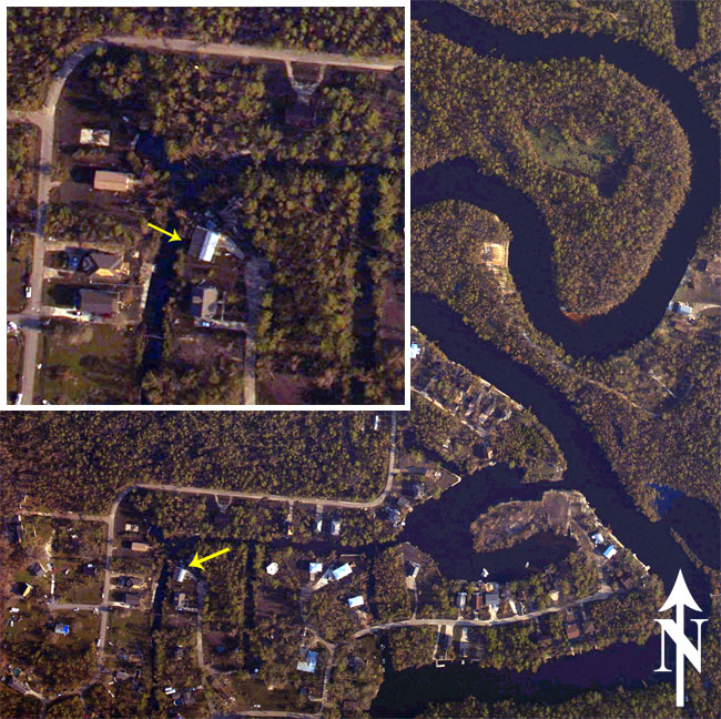 waters during Hurricane Katrina. The red arrow indicates where our house
