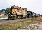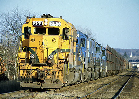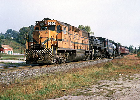 Maine Central GP38 #257 leads a Steamtown Equipment