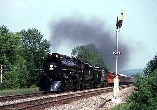 The first photo is of 261's return home, as it passed a semaphore at Barton, New York, on Conrail's Southern Tier Line on June 13, 1996.
