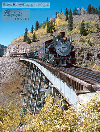 | On September 27-28, 1999, a photo freight was operated over the Cumbres & Toltec Scenic by Trains Unlimited, Tours. The locomotive, C&TS 2-8-2 497, and all the cars were lettered for the Denver & Rio Grande Western. The trip ran from Chama, New Mexico, to Antonito, Colorado, the first day and returned on the second. Over the course of two days, 38 photo runbys were held. |