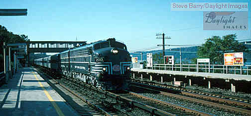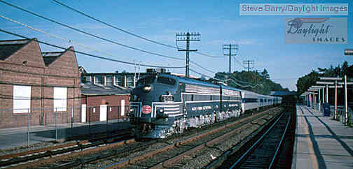 To commemorate the 150th Anniversary of the Hudson River Railroad (predecessor of the New York Central on the east side of the Hudson River in New York), Metro-North Railroad painted a pair of former New Haven FL9s into the NYC Lightning Stripe scheme (Metro-North operates commuter service over this railroad). The two FL9s pulled a series of excursions on October 2, 1999, and then pulled a Metro-North business train on October 7th.