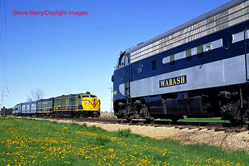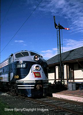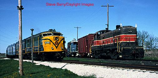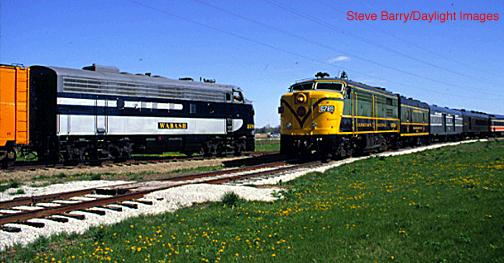 The Monticello Railway Museum of Monticello, Illinois, hosted its first Photographers' Weekend on April 24-25, 1999. The stars of the show were Wabash F7 1189 and Canadian National FPA4 6789. The F-unit pulled a freight train, while the Alco cab unit powered a short passenger train. Photographers were taken tio various locations on the museum's three-mile line in the Wabash caboose at the end of the freight. |