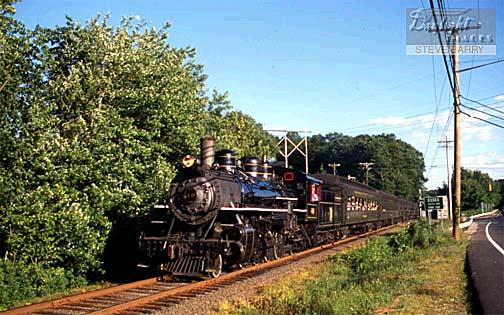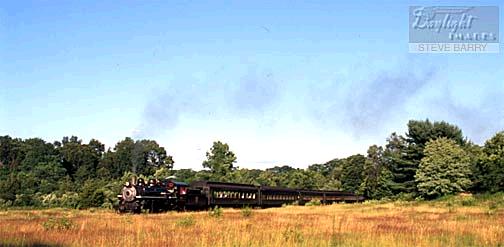 The Convention opened on July 11th with a trip over the Valley Railroad, with 2-8-2 No.40 dpoing the honors. Th excursion train performs a runby in the big field just north of the Essex, Connecticut, station.