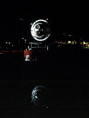 Reflections of a Daylight - the smokebox of SP 4449 reflects in a puddle during the overnight layover at Yakima, Washington.