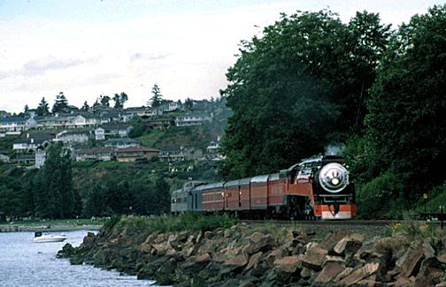 Returning to civilization, the train sprinted down the Washington coast for the return to Portland. It is seen here from the ferry slip at Steilacoom.