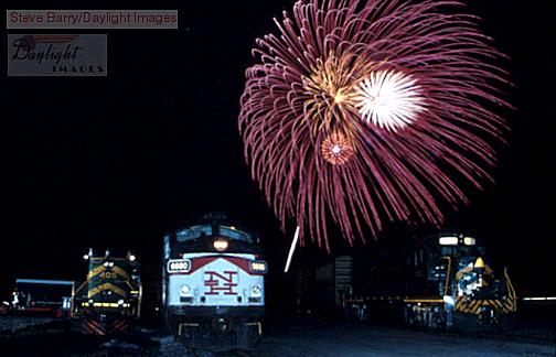 The fireworks last for nearly 30 minutes, so it is possible to get multiple angles of the lineup of locomotives in th yard during the display.