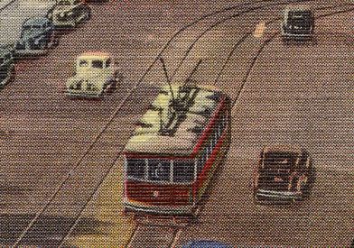 A "popular corner" in Redondo Beach, with a side view of a wood PE interurban, probably a "10". Below is a zoomed-in view of this car, and some adjacent automobiles.