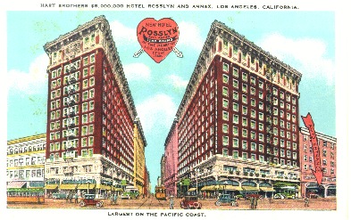 Hotel Rosslyn, Los Angeles, with two LARy streetcars.