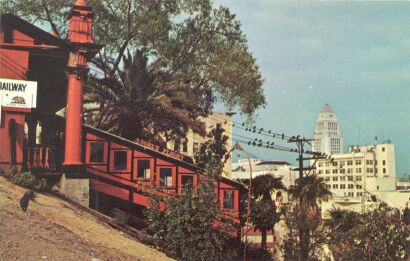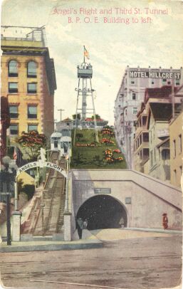 Here is an earlier view of Angels Flight and an observation tower that once stood at the upper end of it.